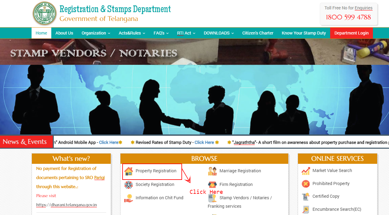 IGRS Telangana: Encumbrance Certificate Registration Stamp Duty
