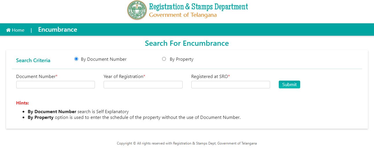 IGRS Telangana Registration:Encumbrance Certificate Status