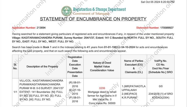 Encumbrance Certificate Of Telangana: IGRS Telangana EC