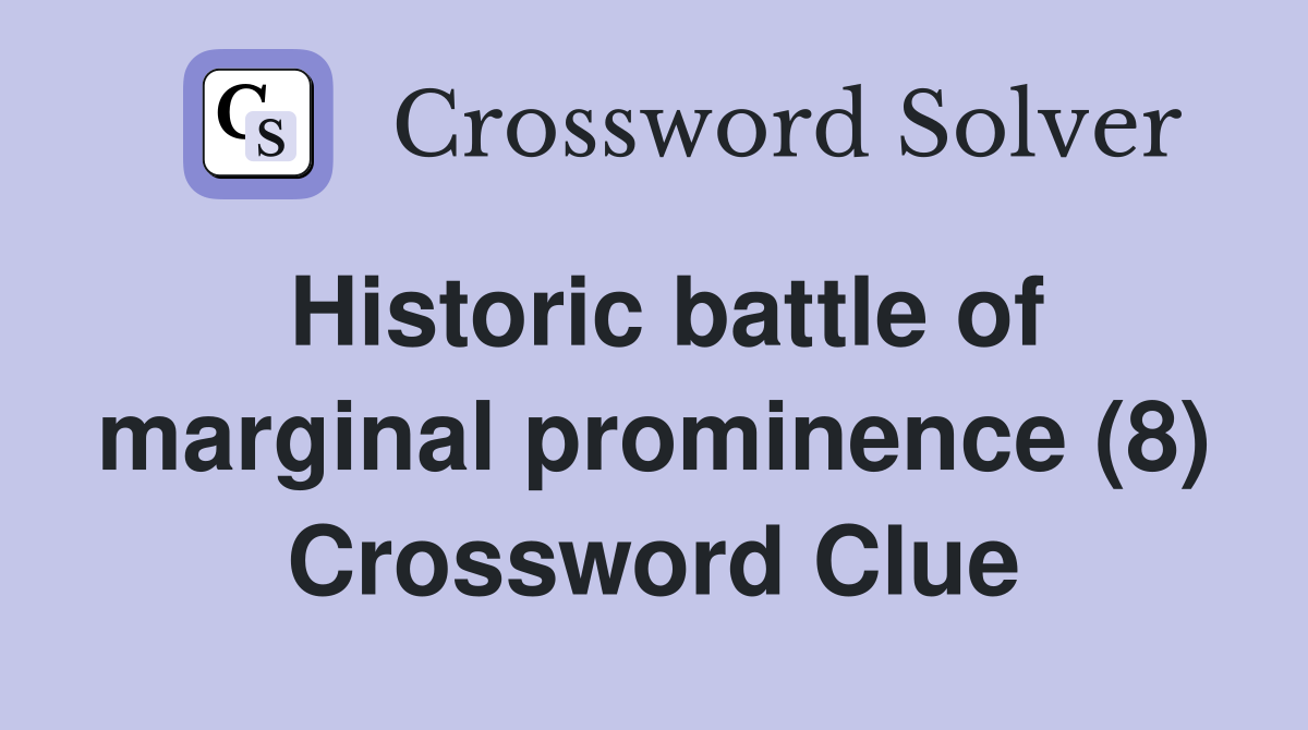 Historic battle of marginal prominence (8) Crossword Clue Answers