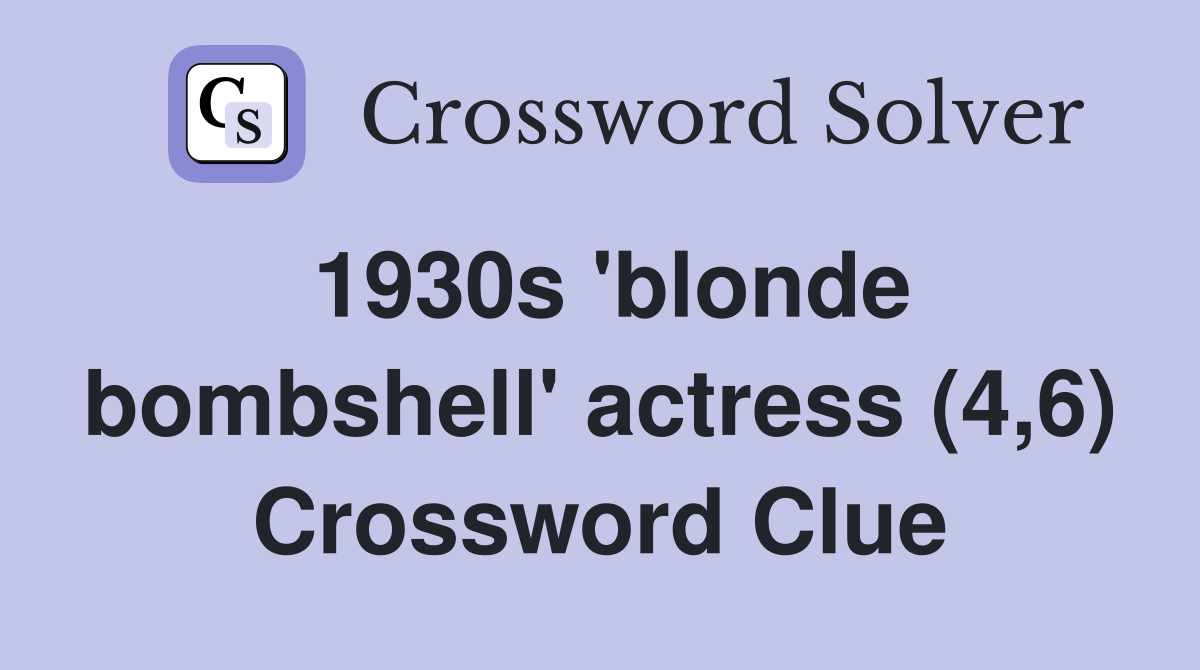 1930s #39 blonde bombshell #39 actress (4 6) Crossword Clue Answers