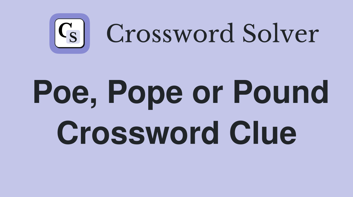 Poe Pope or Pound Crossword Clue Answers Crossword Solver