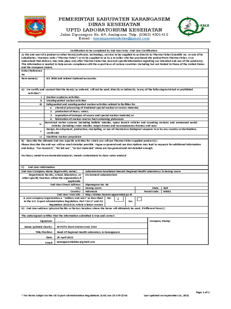 Corporate End Use Certificate Thermo 2022 Labkesda Karang Asem