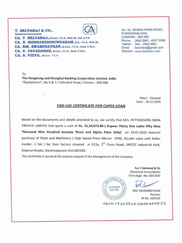 Get End Use Certificate from CA with UDIN