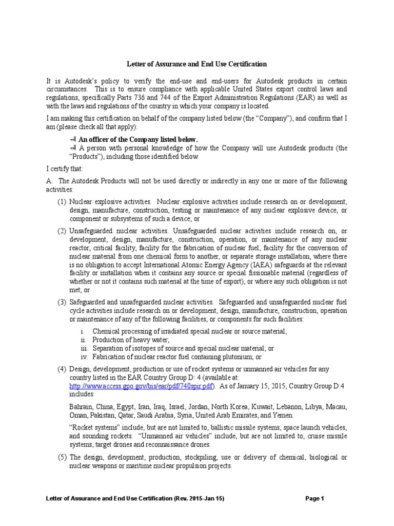 Letter of Assurance and End Use Certification PDF Nuclear Weapons