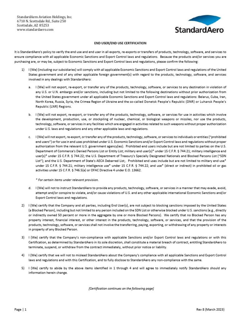 AA End User End Use Certification (Rev 8) N37AC PDF Office Of