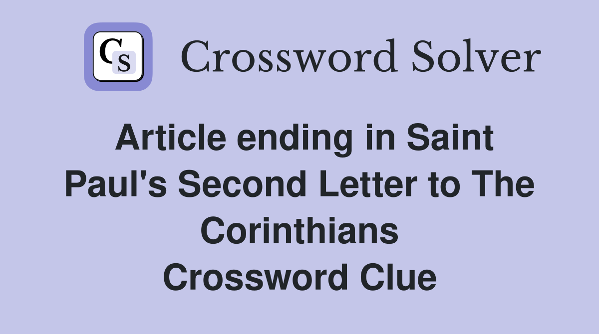 Article ending in Saint Paul #39 s Second Letter to The Corinthians