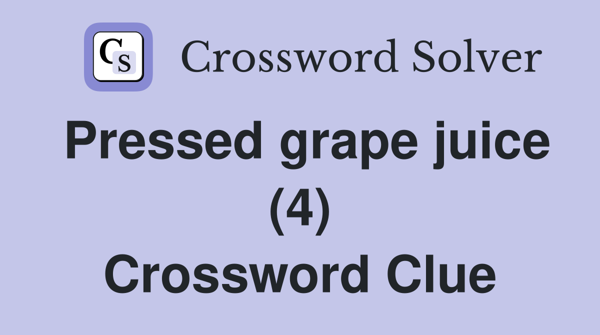 Pressed grape juice (4) Crossword Clue Answers Crossword Solver
