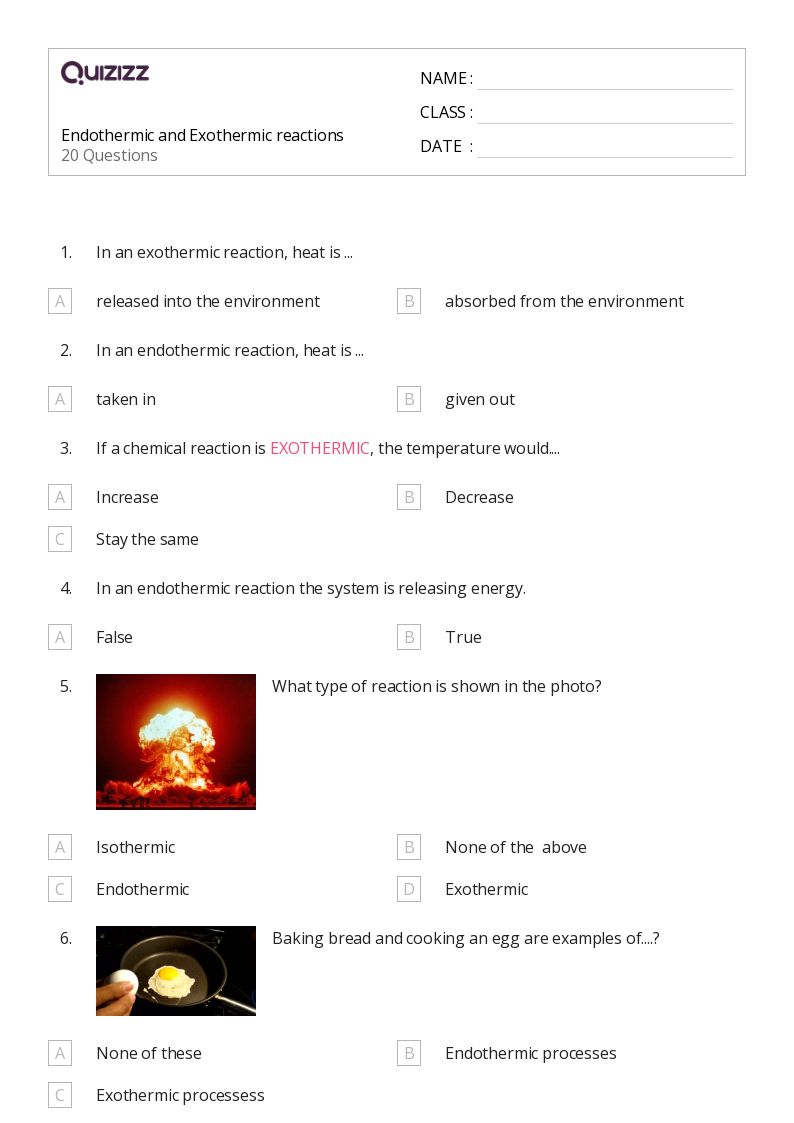 Grade 12 Endothermic And Exothermic Reaction Worksheets 2024