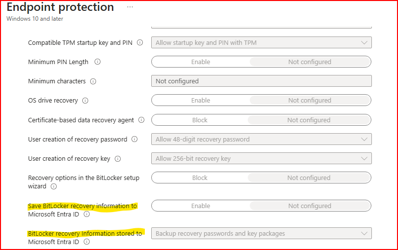 How to configuring Disk Encryption Recovery Backup in Entra ID Using