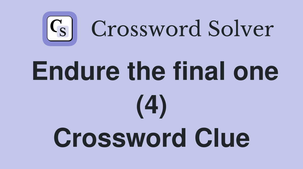 Endure the final one (4) Crossword Clue Answers Crossword Solver