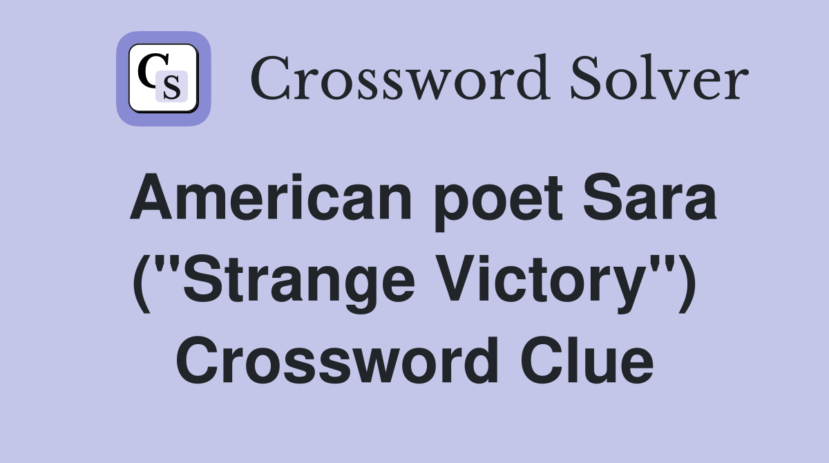 American poet Sara ( quot Strange Victory quot ) Crossword Clue Answers