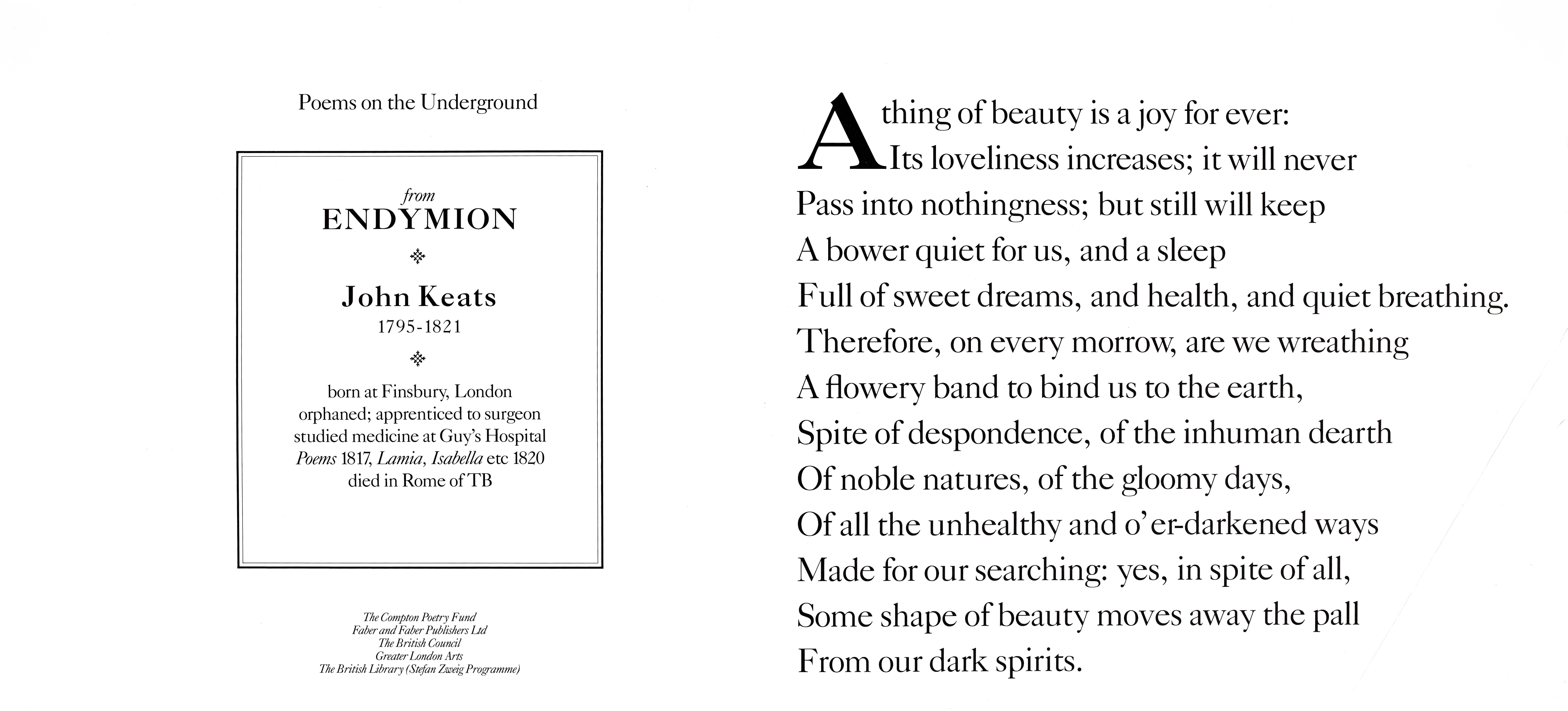 Lines from Endymion Poems on the Underground