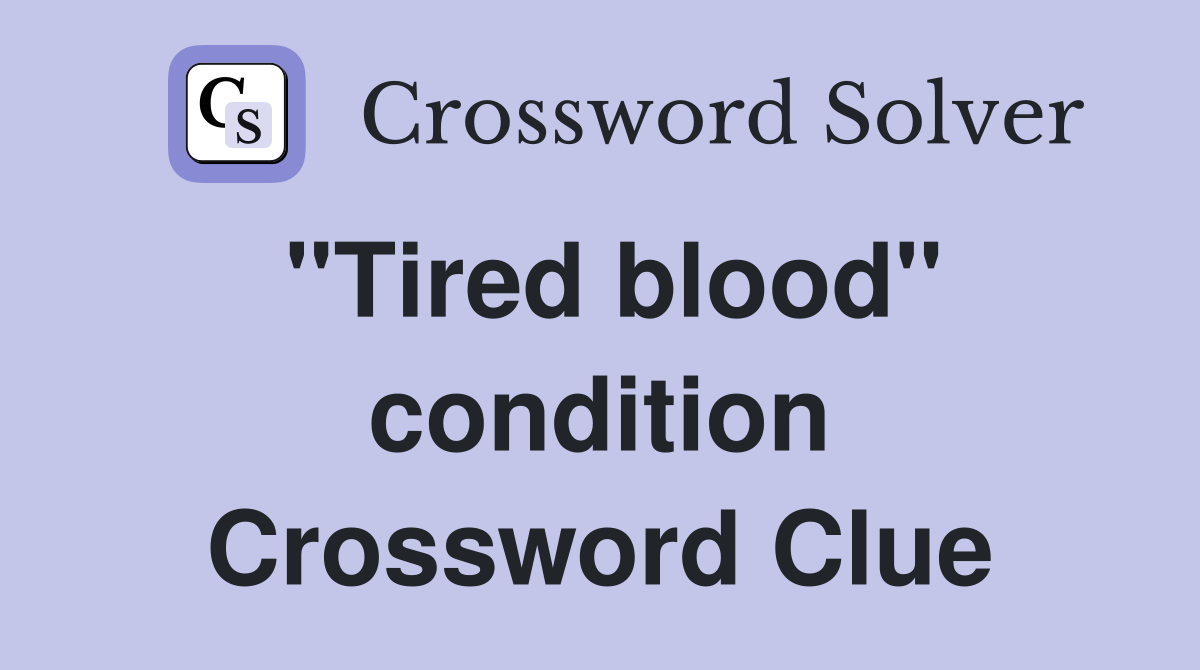 quot Tired blood quot condition Crossword Clue Answers Crossword Solver