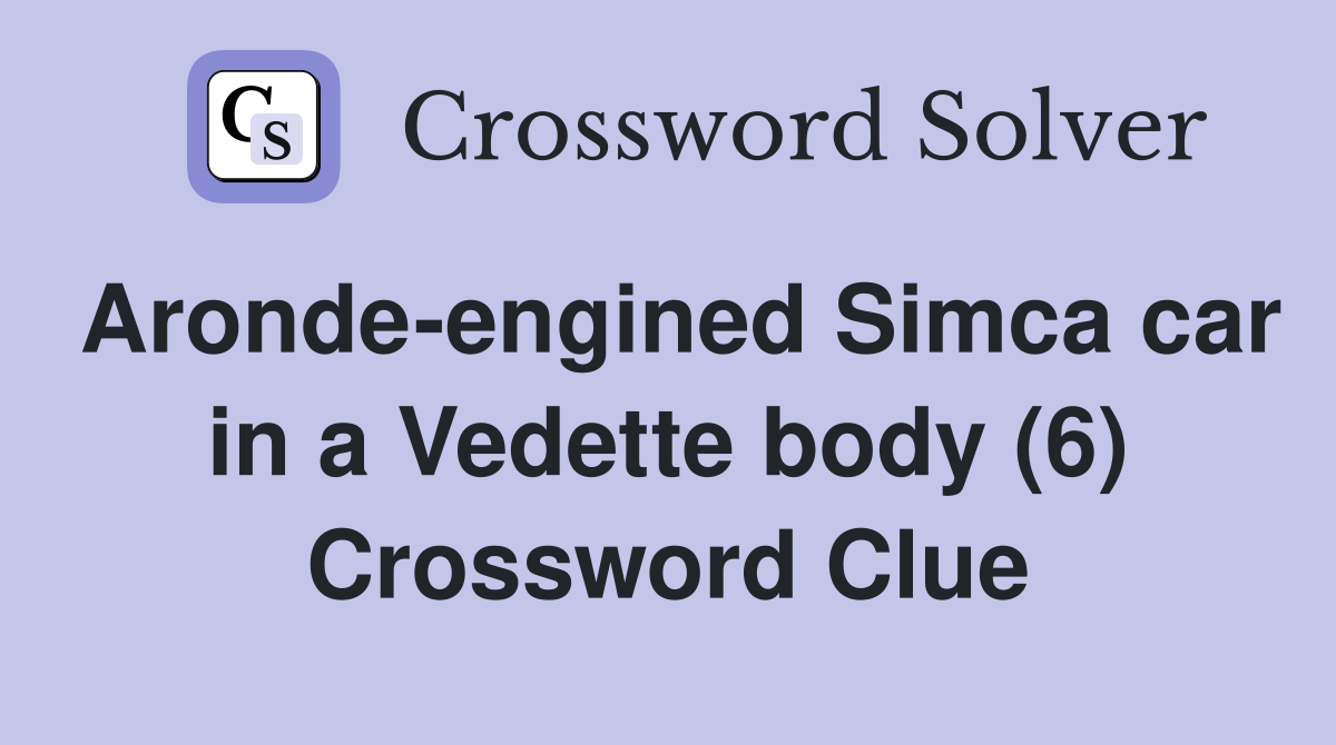 Aronde engined Simca car in a Vedette body (6) Crossword Clue Answers