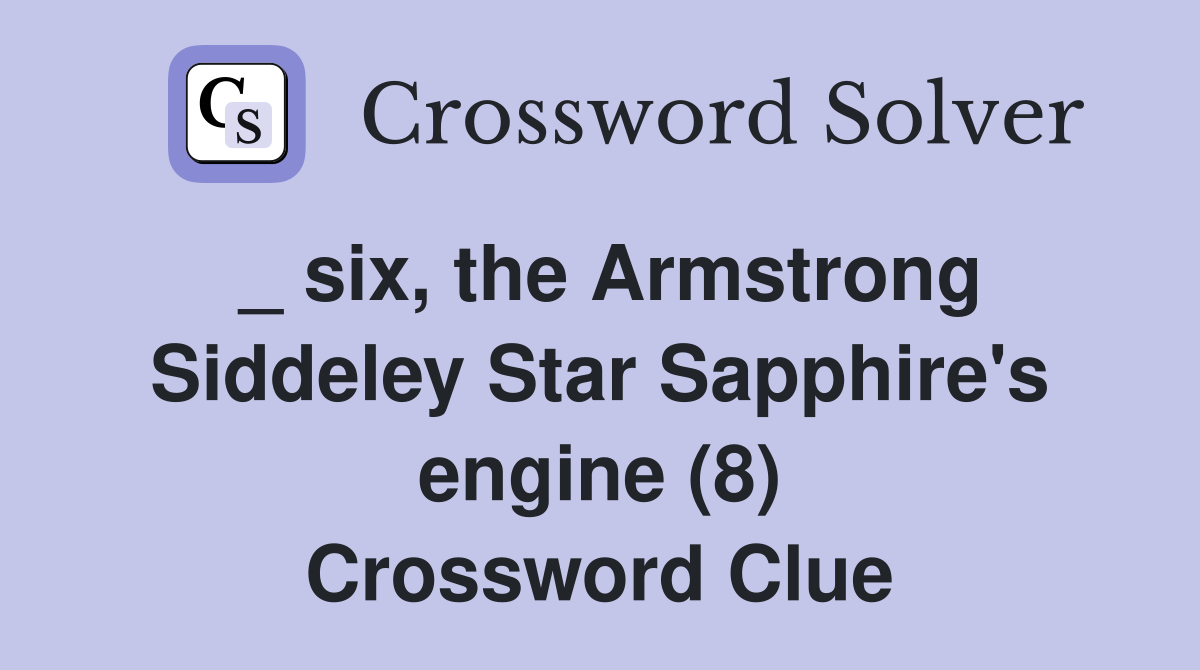 six the Armstrong Siddeley Star Sapphire #39 s engine (8) Crossword