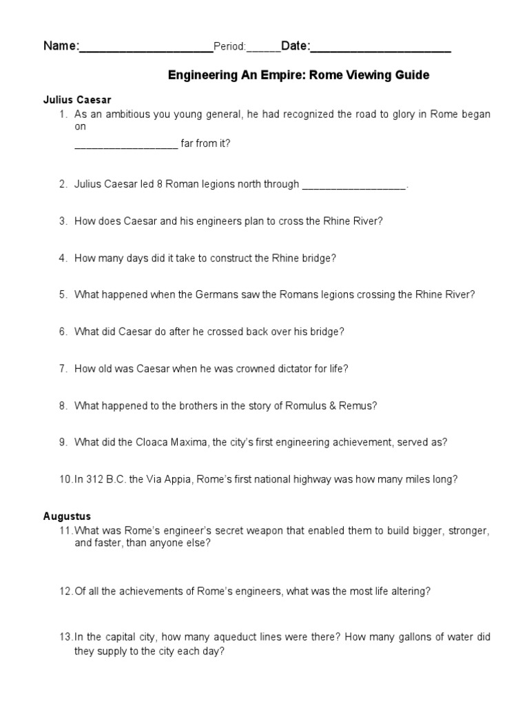 Engineering Empire Rome Viewing Guide PDF Ancient Rome Julius