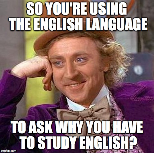 Meme Willy Wonka so you are english teacher tell me how you feel