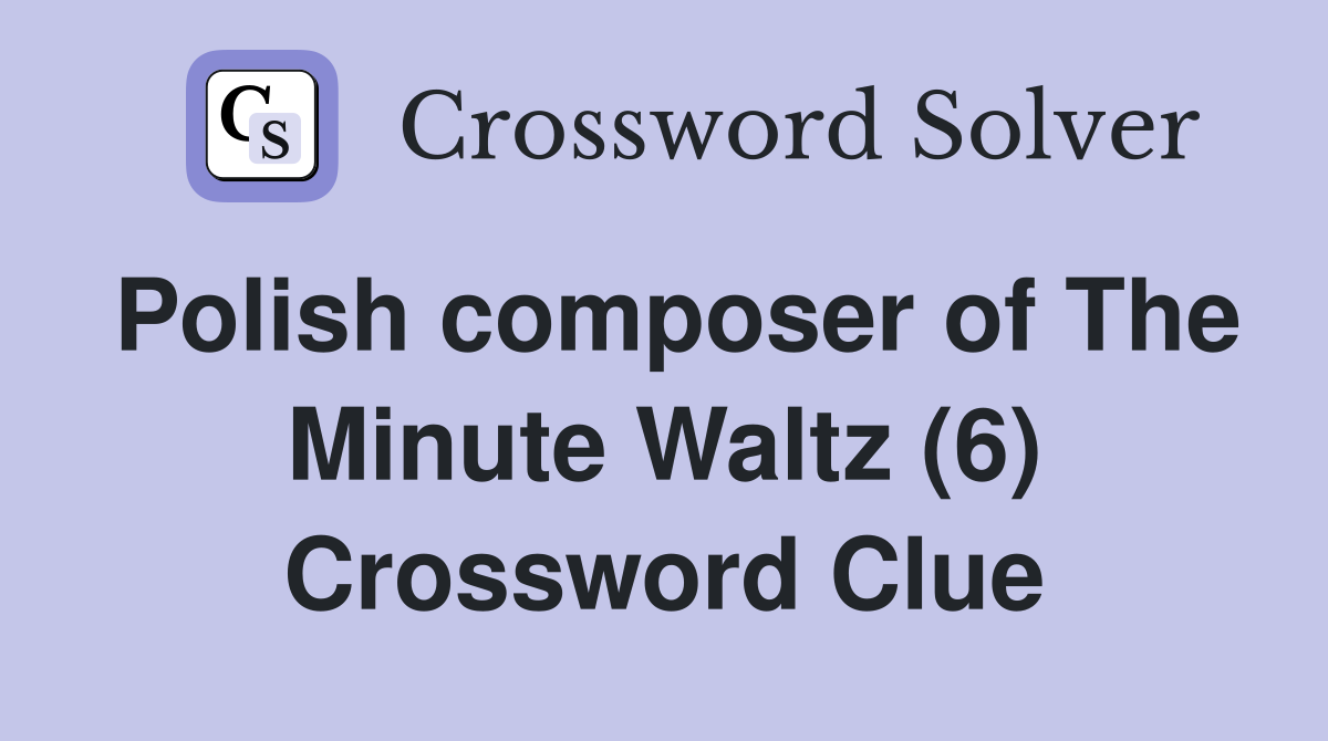 Polish composer of The Minute Waltz (6) Crossword Clue Answers