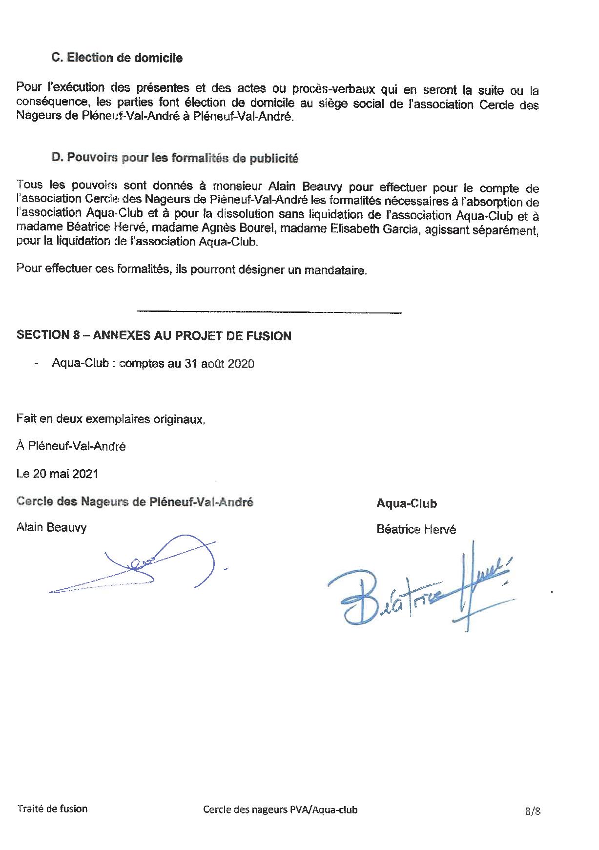 Projet de fusion avec l Aqua club Cercle des Nageurs de Pléneuf Val André