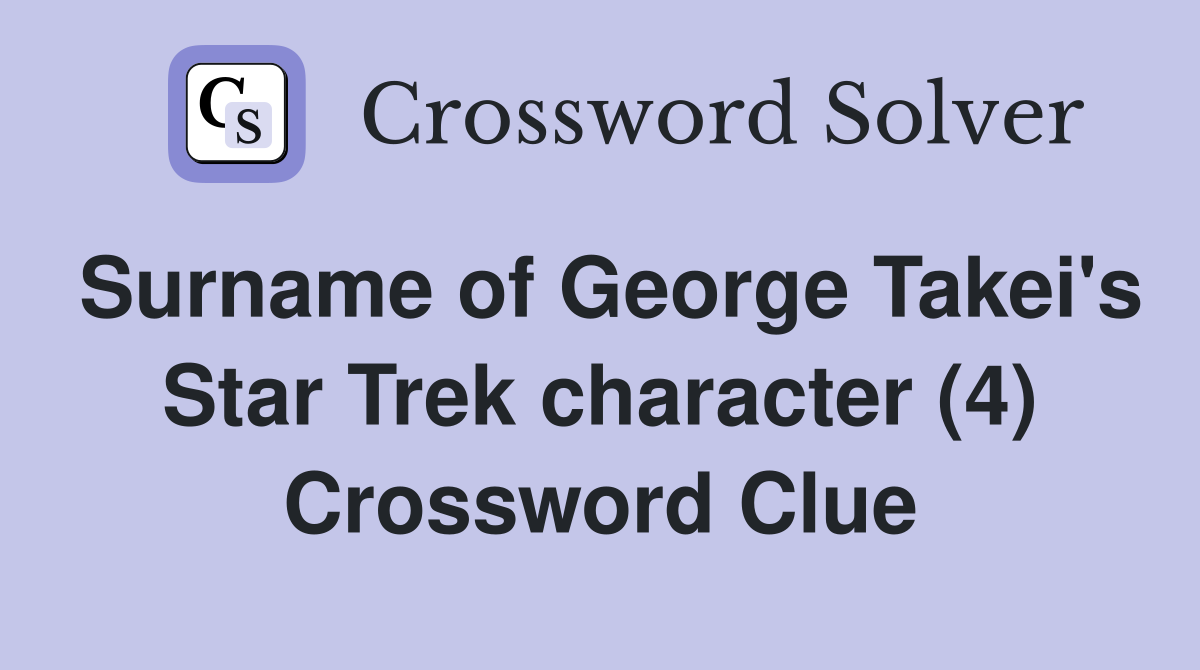 Surname of George Takei #39 s Star Trek character (4) Crossword Clue