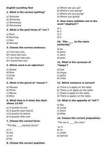 SPaG KS2 Worksheets English Test Printable Worksheets