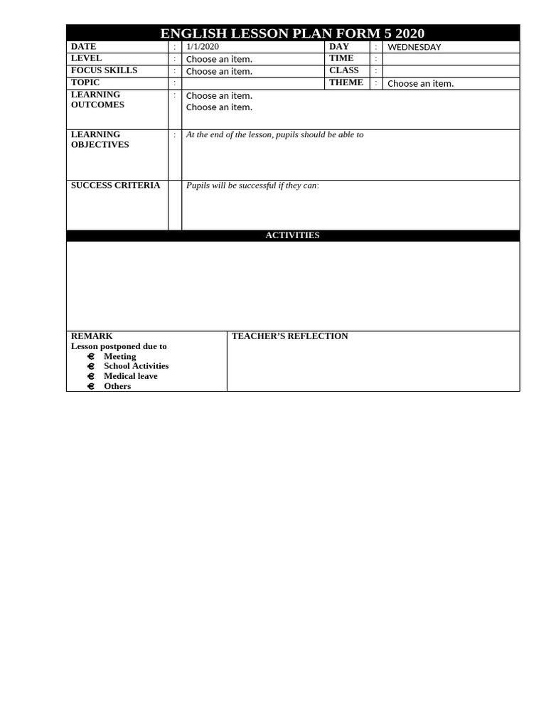 Lesson Plan Template (English) PDF Lesson Plan Learning