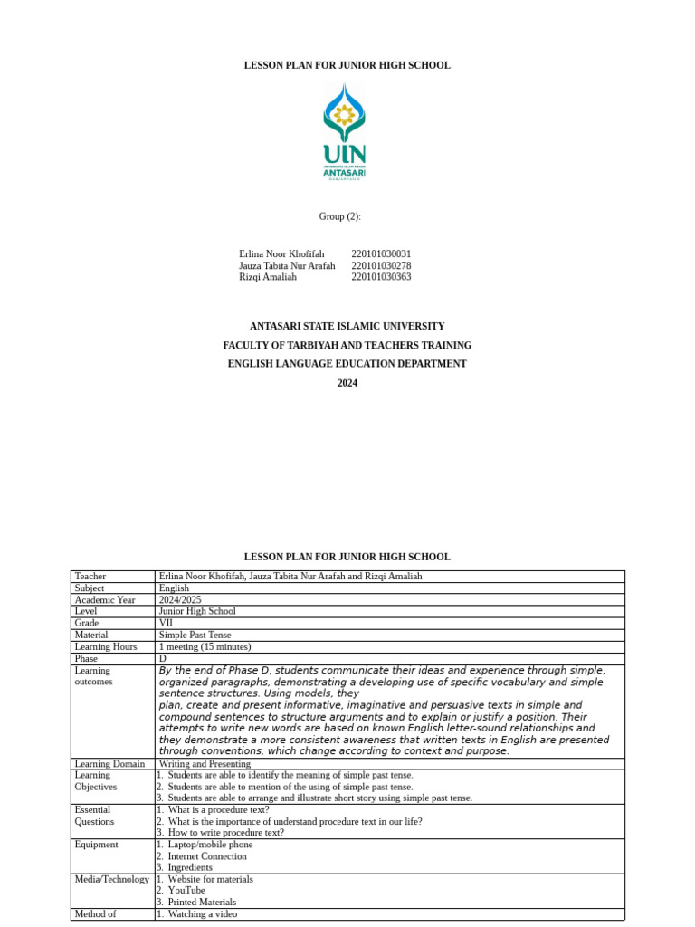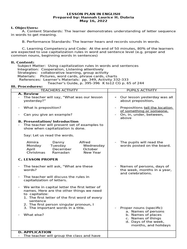 ENGLISH LESSON PLAN PDF Lesson Plan Word