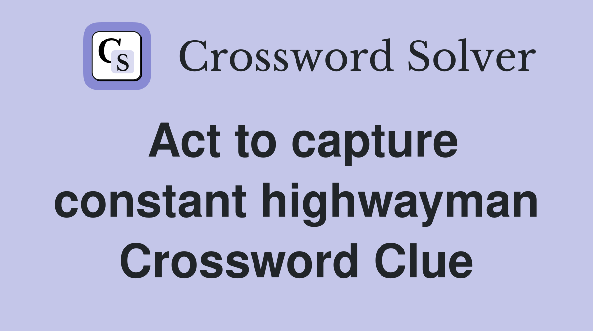 Act to capture constant highwayman Crossword Clue Answers Crossword
