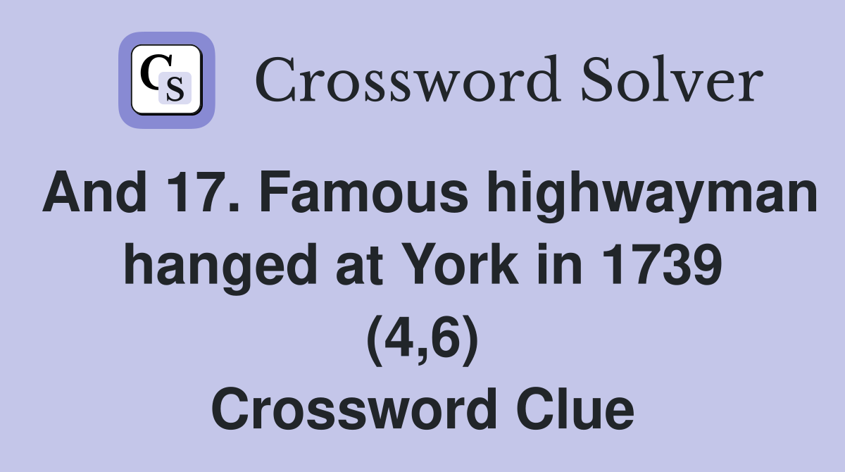And 17 Famous highwayman hanged at York in 1739 (4 6) Crossword Clue
