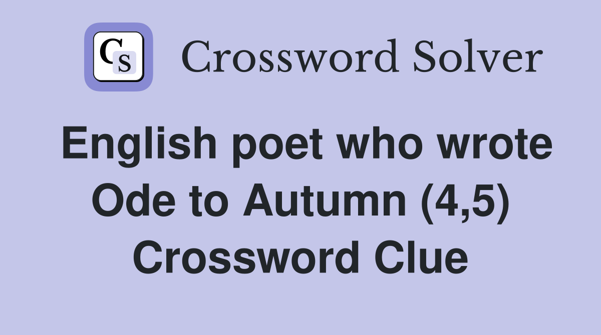 English poet who wrote Ode to Autumn (4 5) Crossword Clue Answers