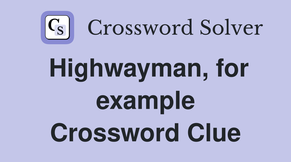 Highwayman for example Crossword Clue Answers Crossword Solver