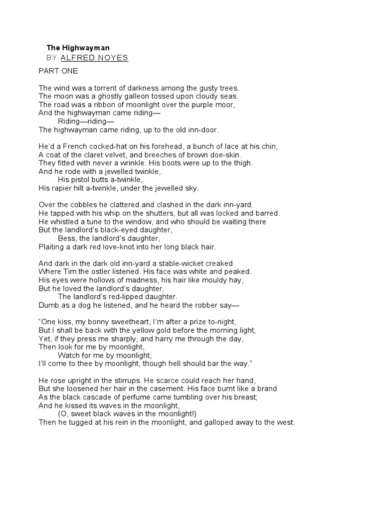 The Highwayman Poem Structure PDF