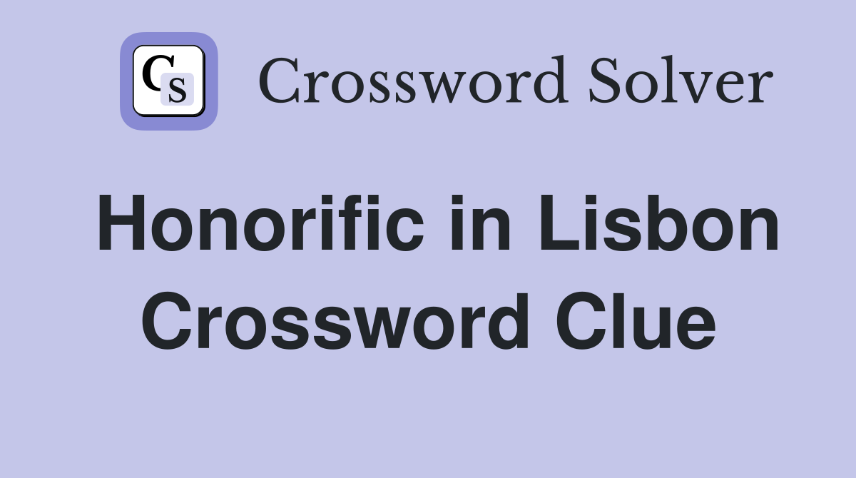Honorific in Lisbon Crossword Clue Answers Crossword Solver