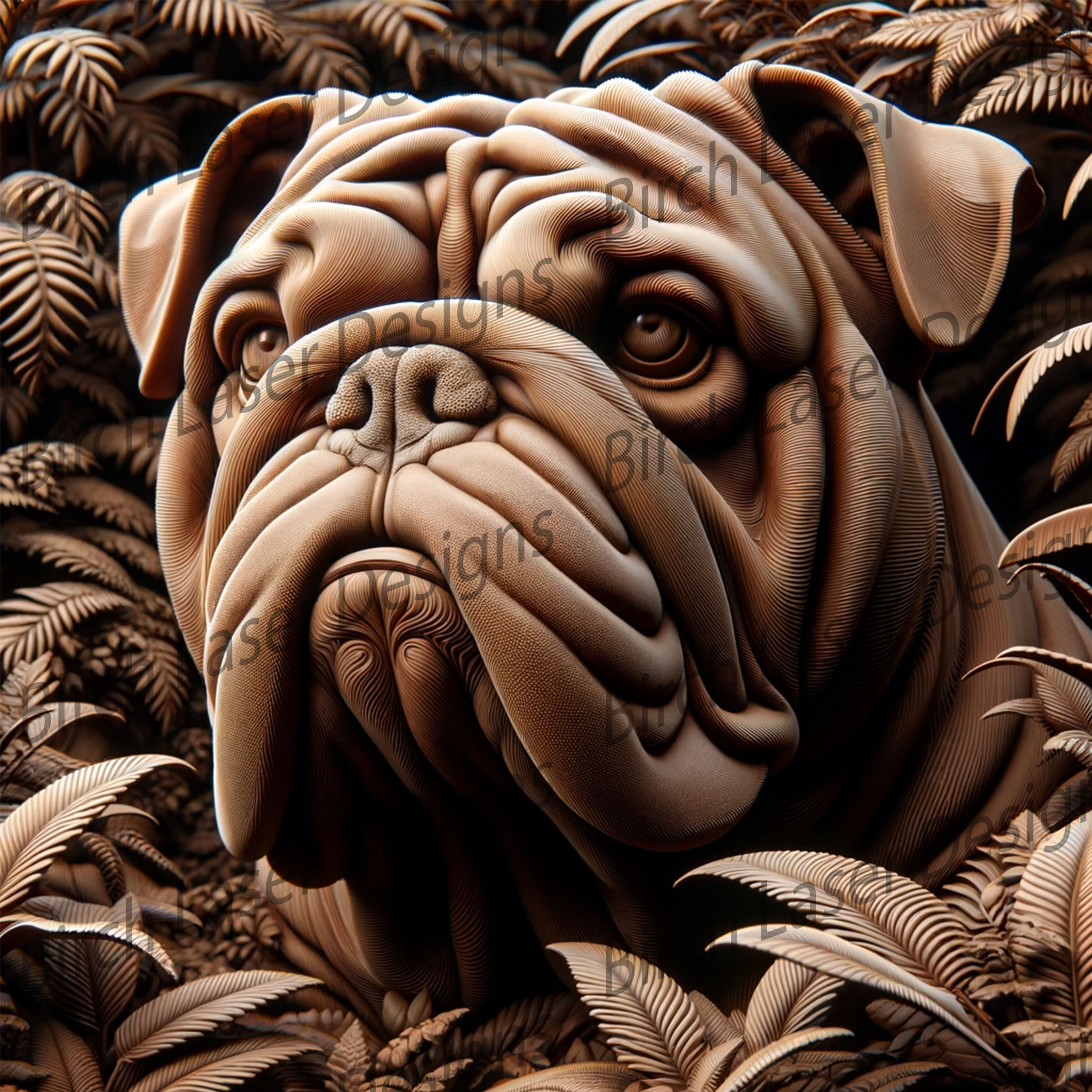 English Bulldog Dog Laser Engraving PNG JPG 3D Illusion Engrave Laser