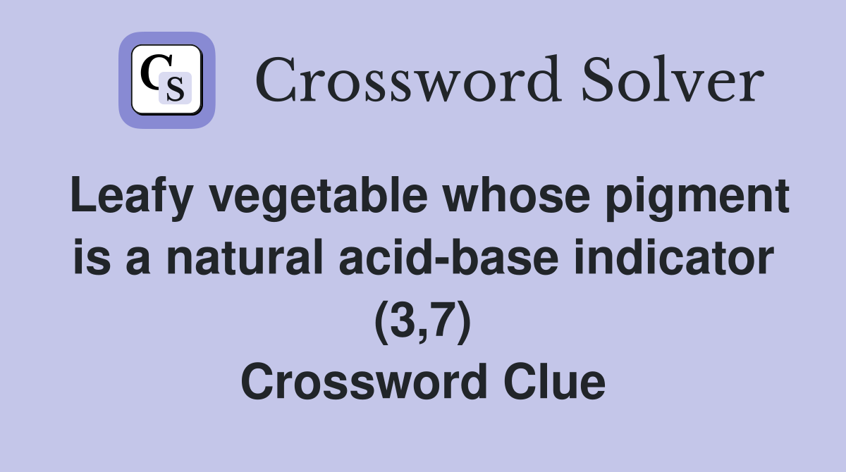 Leafy vegetable whose pigment is a natural acid base indicator (3 7