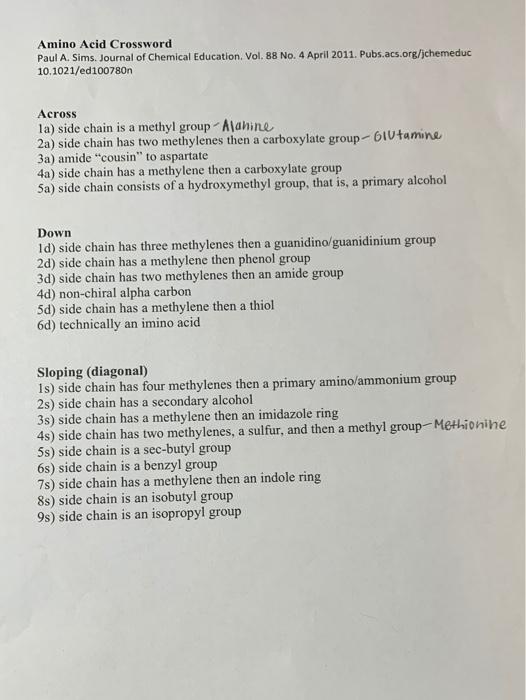 Solved Amino Acid Crossword Paul A Sims Journal of Chegg com