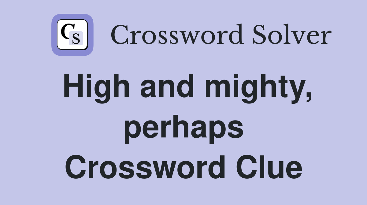 High and mighty perhaps Crossword Clue Answers Crossword Solver