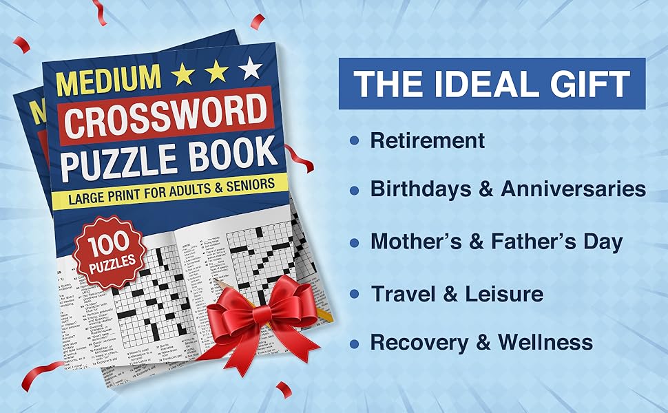 Medium Crossword Puzzle Books For Adults Seniors: 100 Challenges