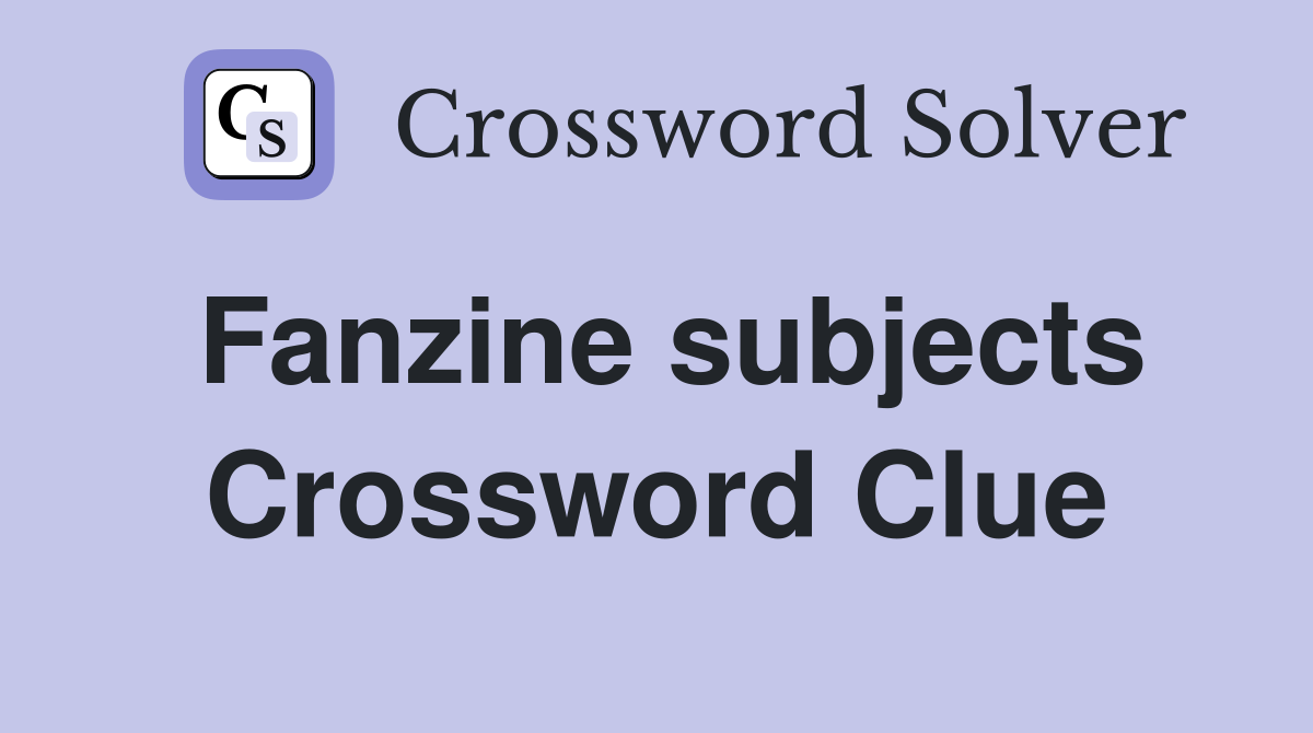 Fanzine subjects Crossword Clue Answers Crossword Solver