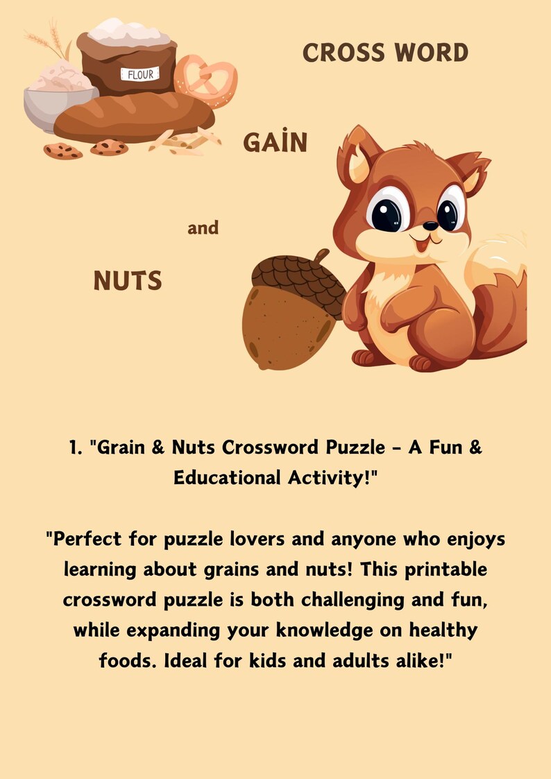 Grain and Nuts Crossword Puzzle Printable Educational Activity Fun for