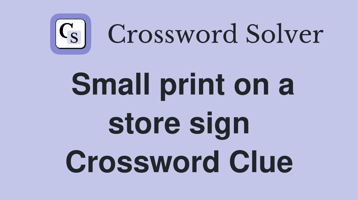 Small print on a store sign Crossword Clue Answers Crossword Solver