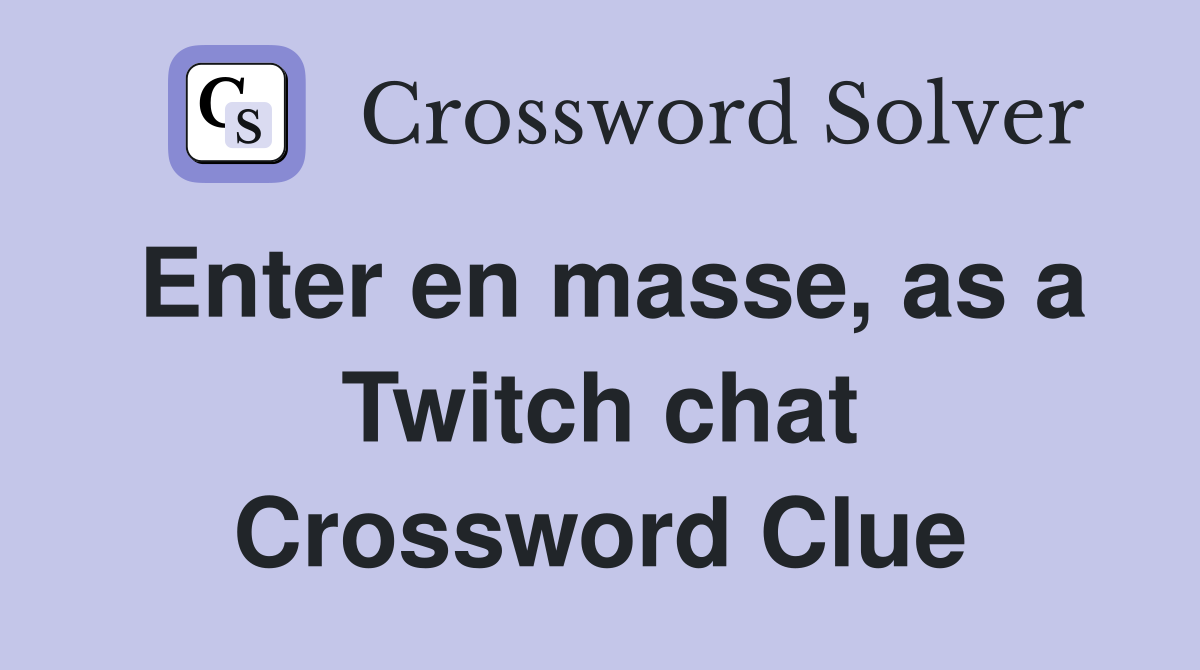 Enter en masse as a Twitch chat Crossword Clue Answers Crossword
