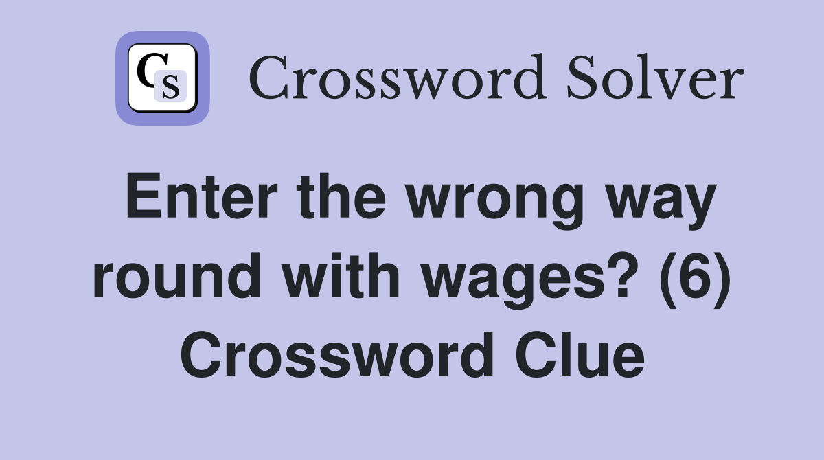 Enter the wrong way round with wages? (6) Crossword Clue Answers