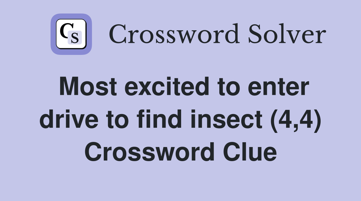 Most excited to enter drive to find insect (4 4) Crossword Clue