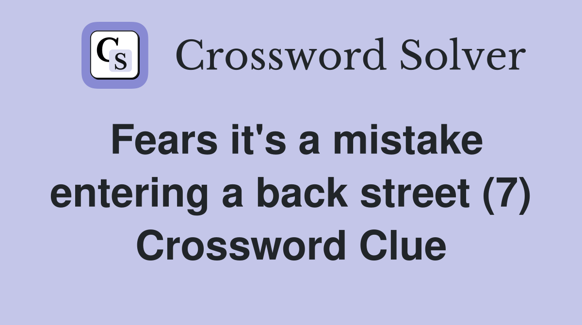 Fears it #39 s a mistake entering a back street (7) Crossword Clue