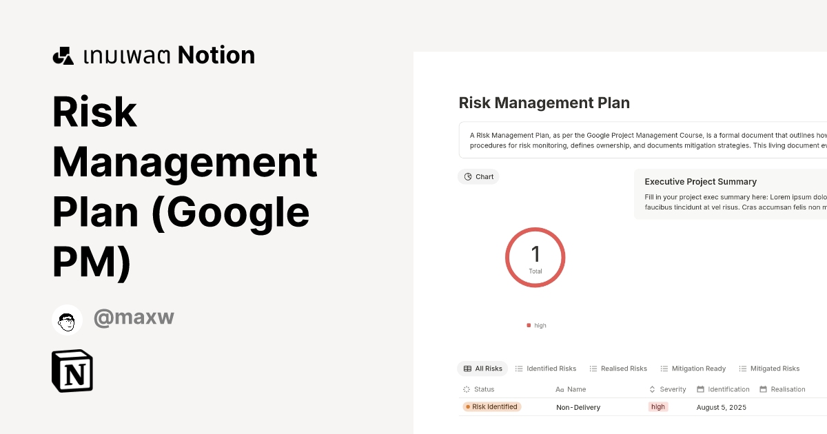 เทมเพลต Risk Management Plan (Google PM) โดย Max มาร์เก็ตเพลส Notion