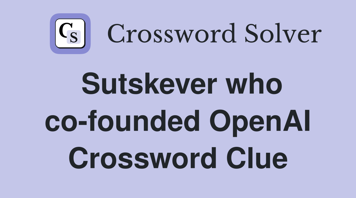 Sutskever who co founded OpenAI Crossword Clue Answers Crossword Solver