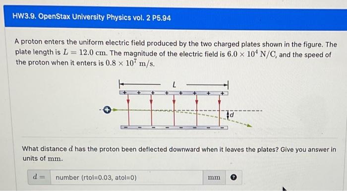Solved A proton enters the uniform electric field produced Chegg com