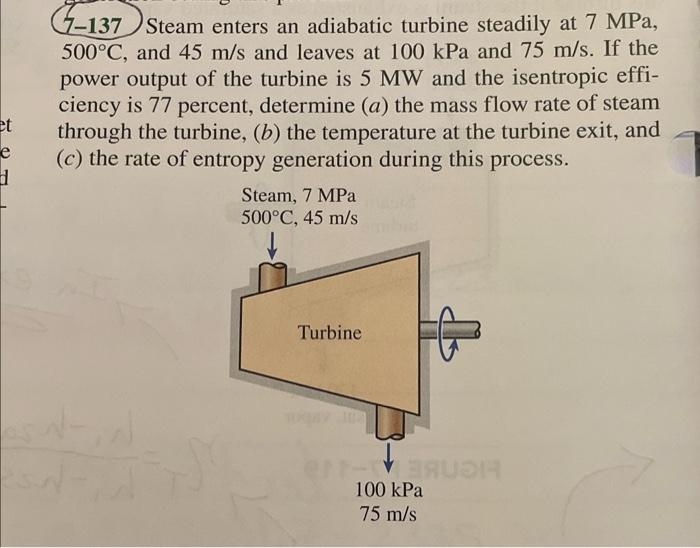 Solved 7 137 Steam enters an adiabatic turbine steadily at Chegg com